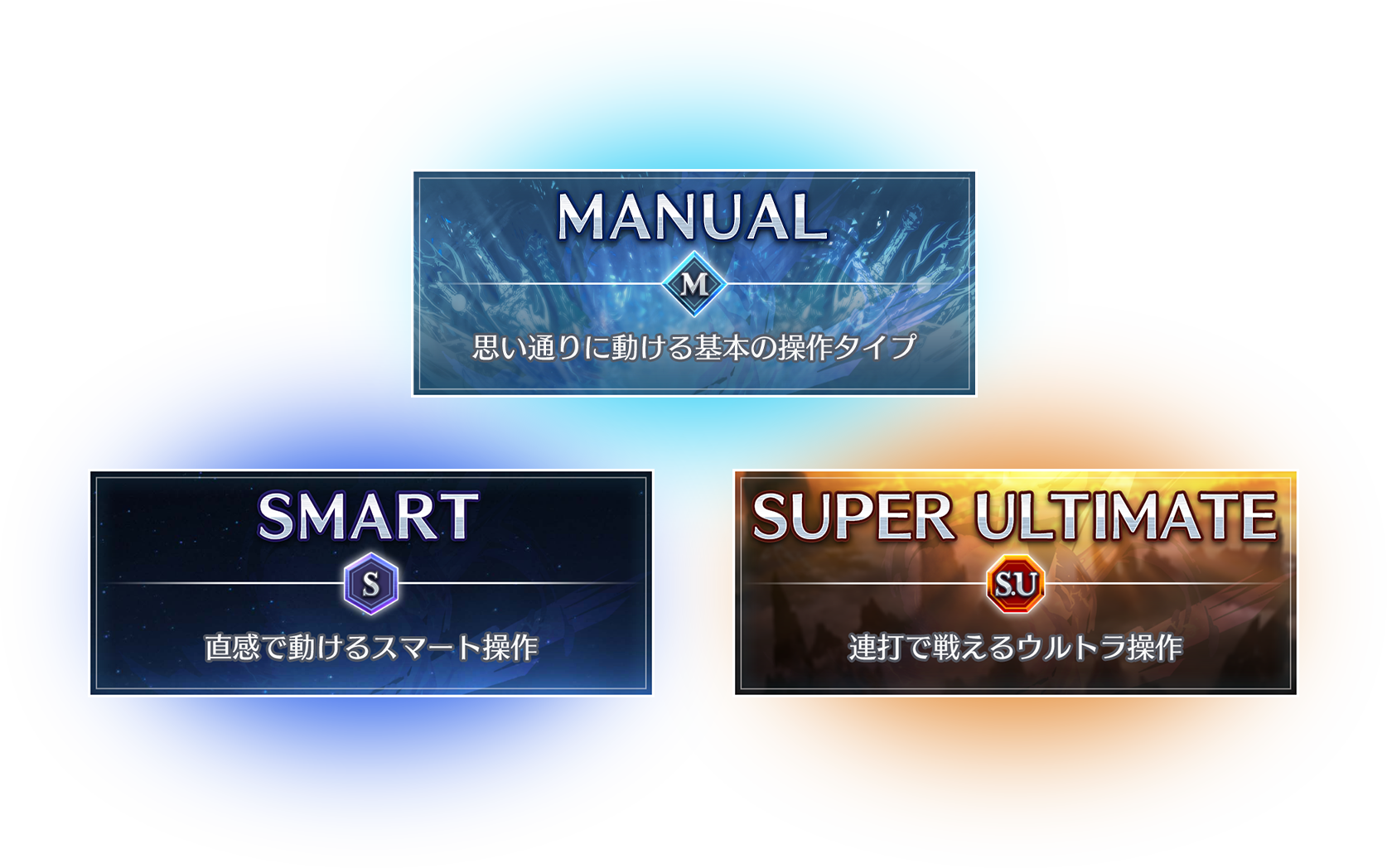 ボタン連打だけで連続技を繰り出す「スマート」、はじめてのプレイでもキャラクターをカッコよく動かせる「スーパーアルティメット」で、誰でも格闘ゲームの楽しさが味わえる。